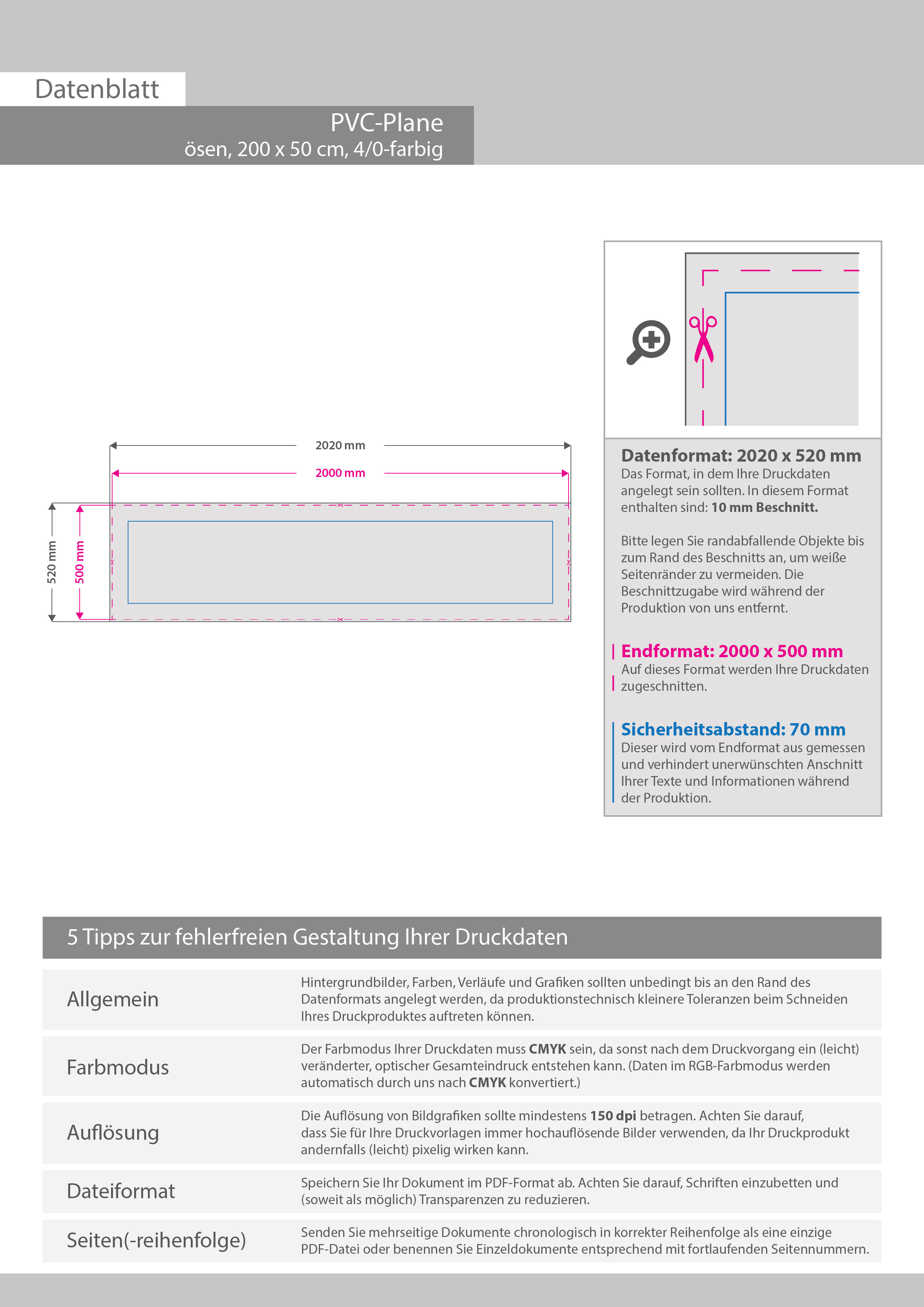Hochwertige PVC-Plane 200 x 50 cm, 4/0-farbig bedruckt, Ösen im Abstand von 50 cm oben und unten