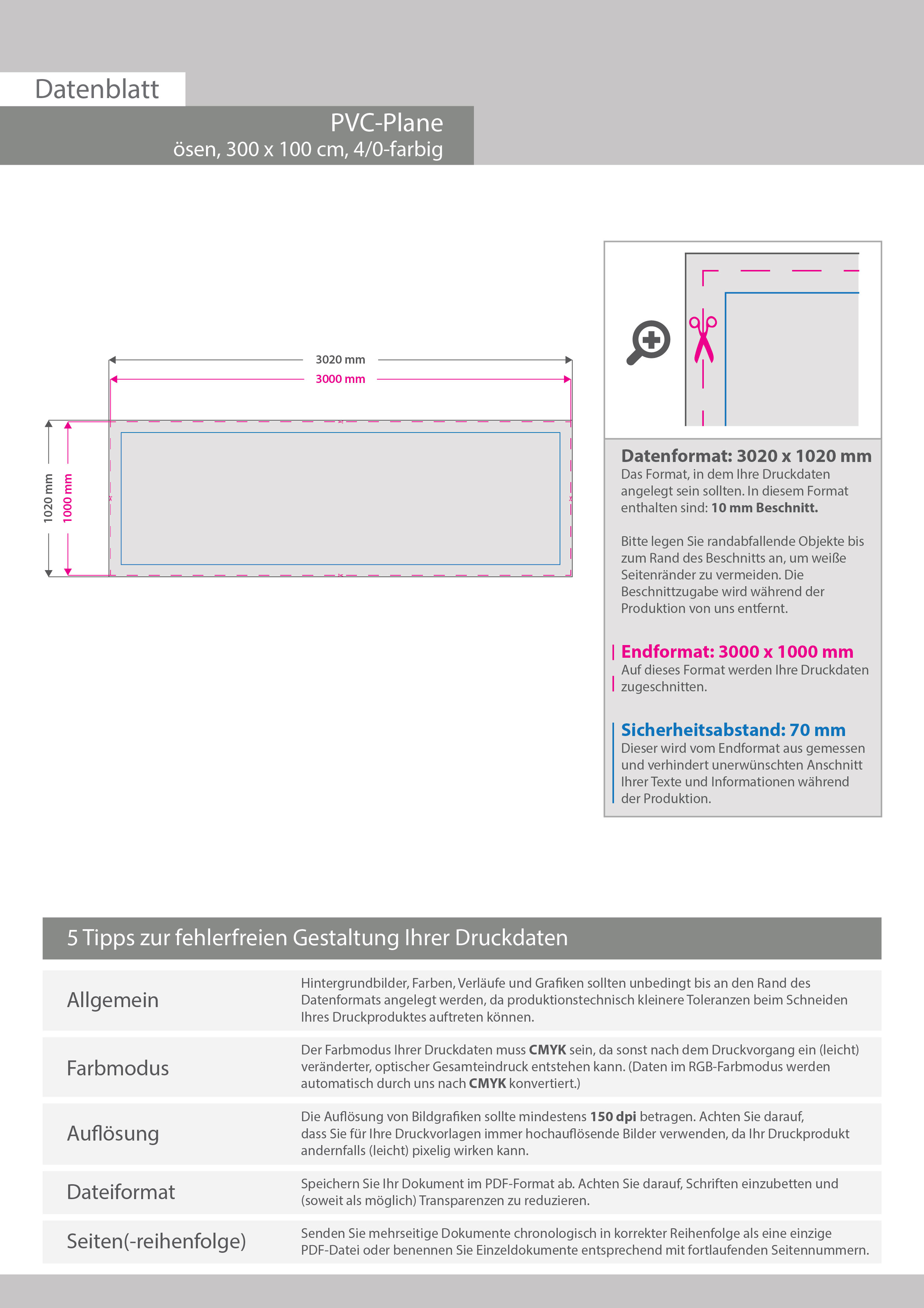 Hochwertige PVC-Plane 300 x 100 cm, 4/0-farbig bedruckt, Ösen im Abstand von 50 cm oben und unten